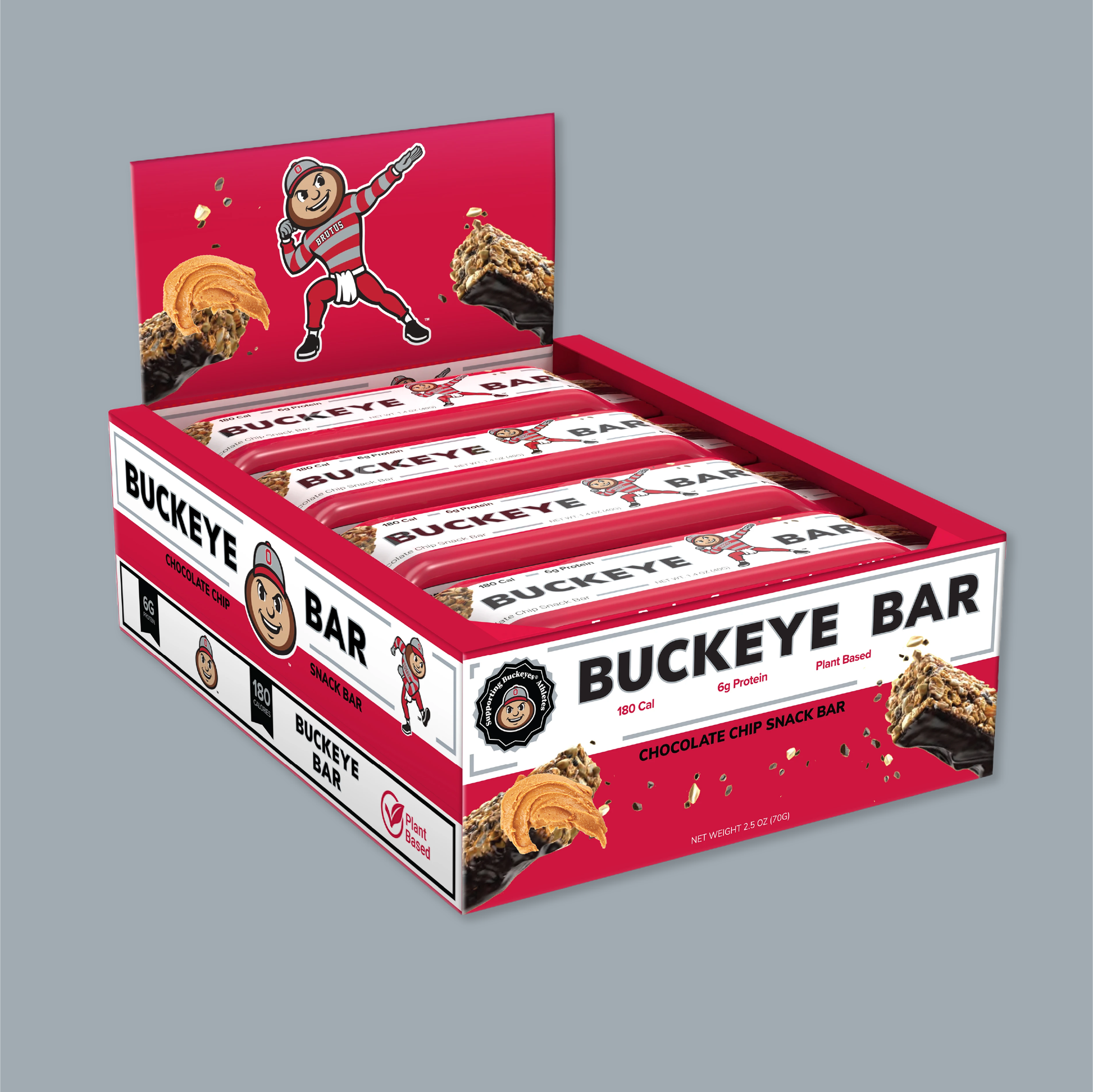 Each 12-pack of Ohio's Buckeye Bars are loaded with the perfect combination of granola, almonds, creamy peanut butter, protein, low sugar, low calories, and are the ideal snack to help you power through your day.